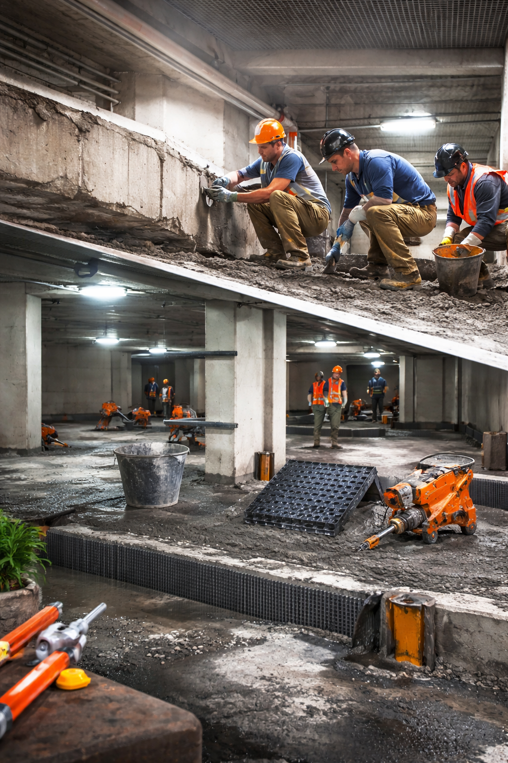 We deliver specialized restoration systems for concrete structures, waterproofing, epoxy flooring and foundation repair across residential, commercial and industrial properties.